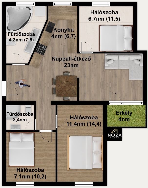 - nappali plusz 3 hálószoba