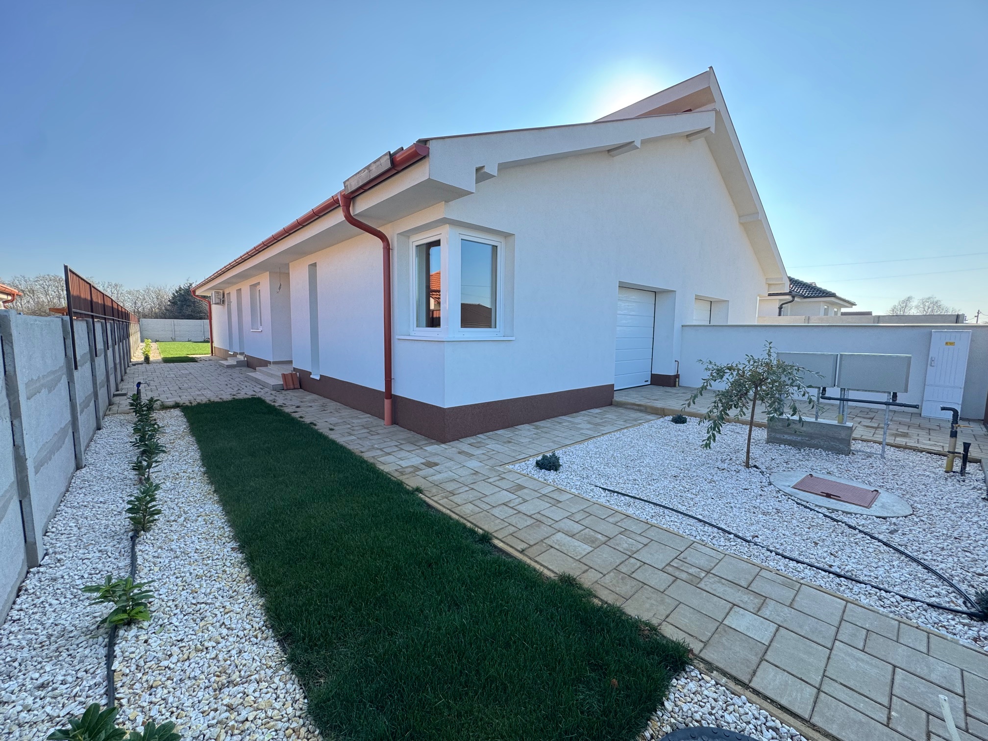 - térkövezett kocsibeálló és járda