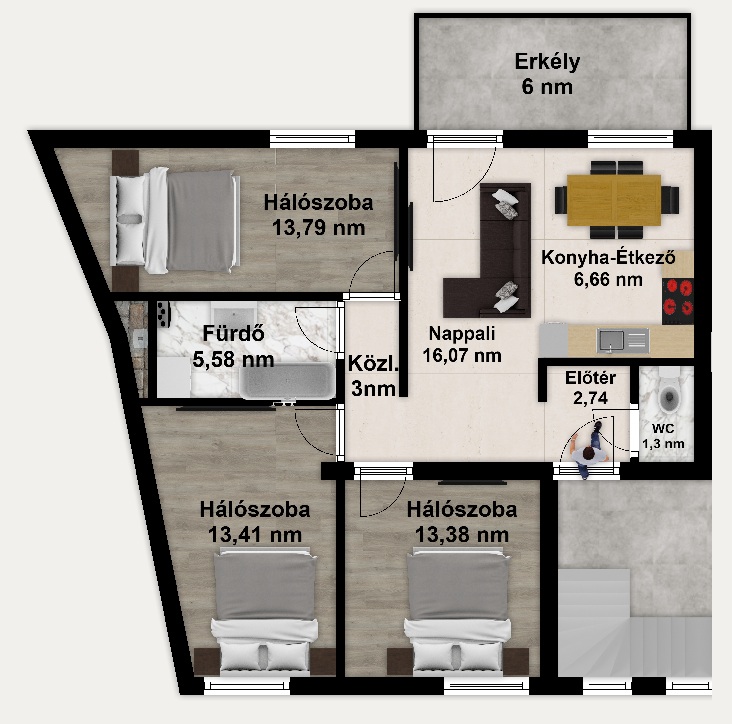 - nappali plusz 3 szoba